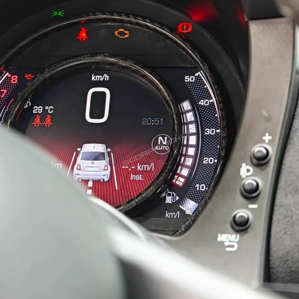 Cover in true carbon to cover the chrome rings that total kilometers of the 500 Abarth. It is applied with double-sided adhesive already provided on any 500, including Fiat.