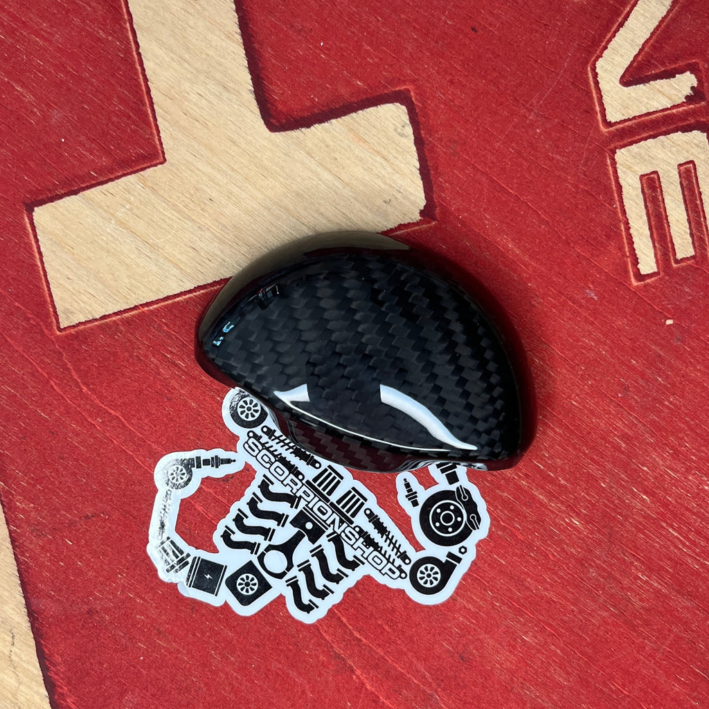 Cover in true carbon that is applied (with double-sided adhesive already provided) over the original plastic covering of the front seat belts. Item sold in pairs.