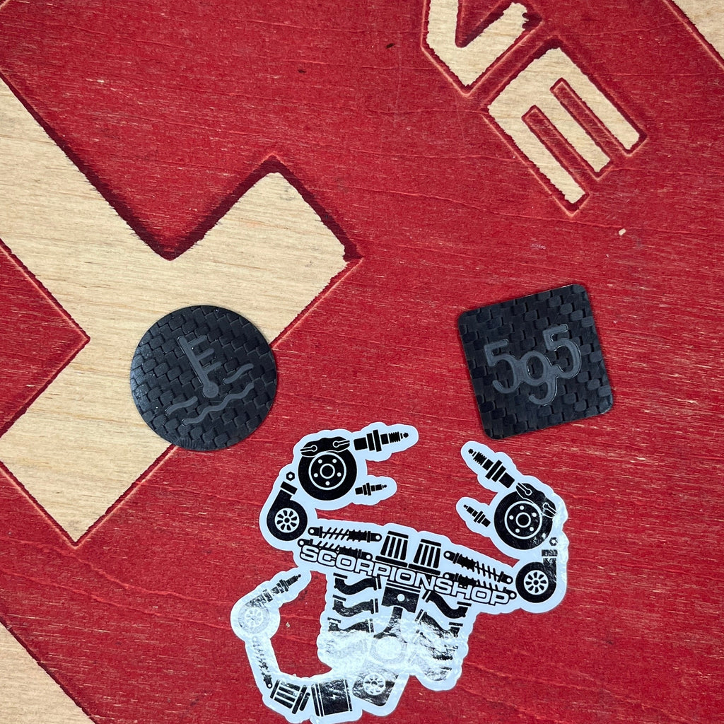 High-quality badge made of real carbon fiber to be applied over the water/coolant tank of the 500.