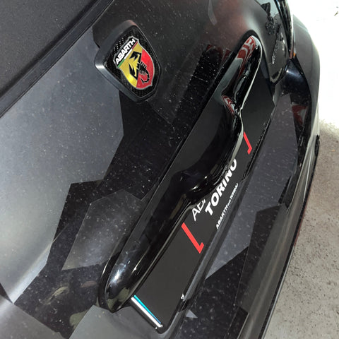 The kit for Fiat does not fit Abarth (and vice versa). The front and rear logos are different, the handles are the same