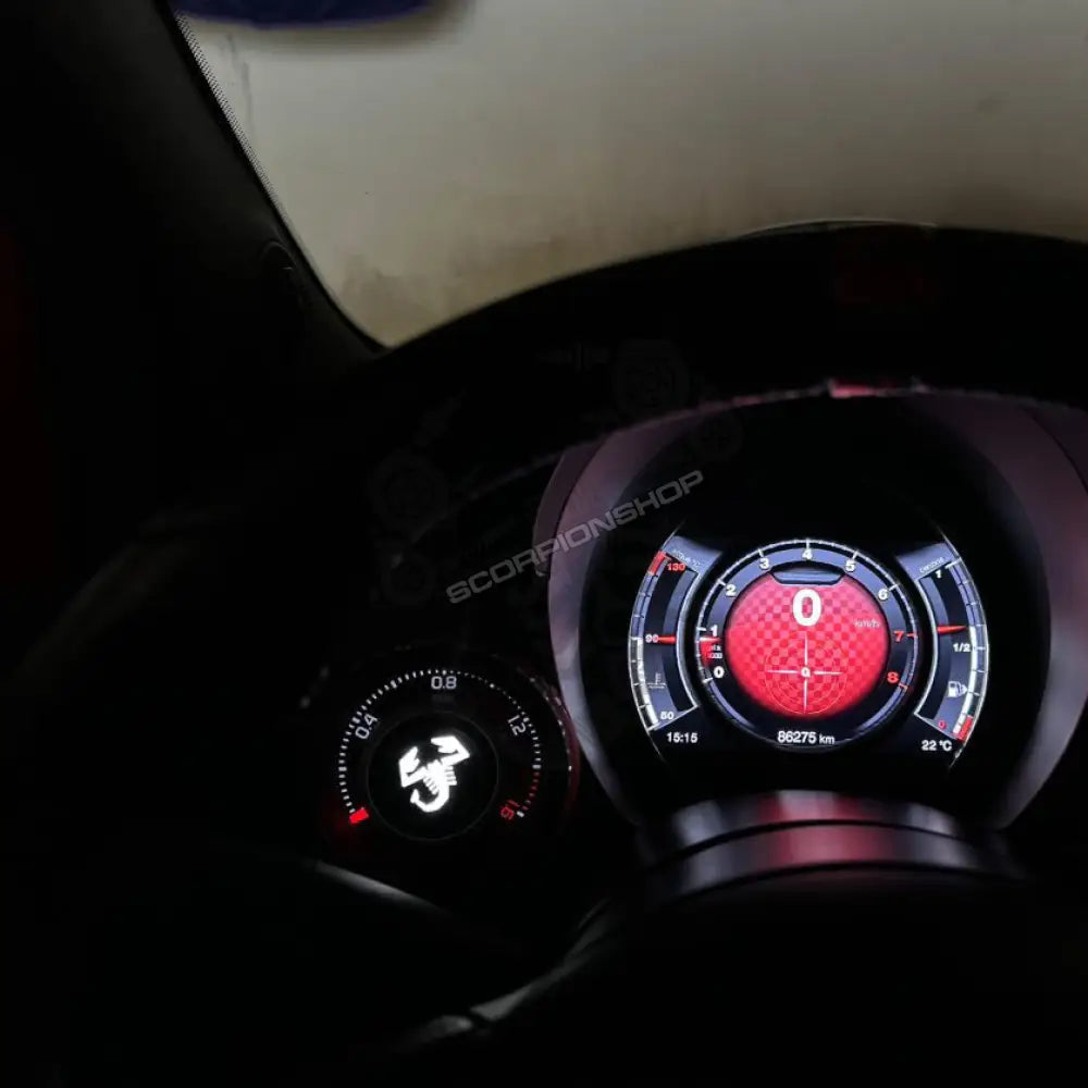 Cover in vero carbonio artigianale fatto a mano per la parte interna del manometro turbo 500 Abarth; installabile su ogni manometro originale.